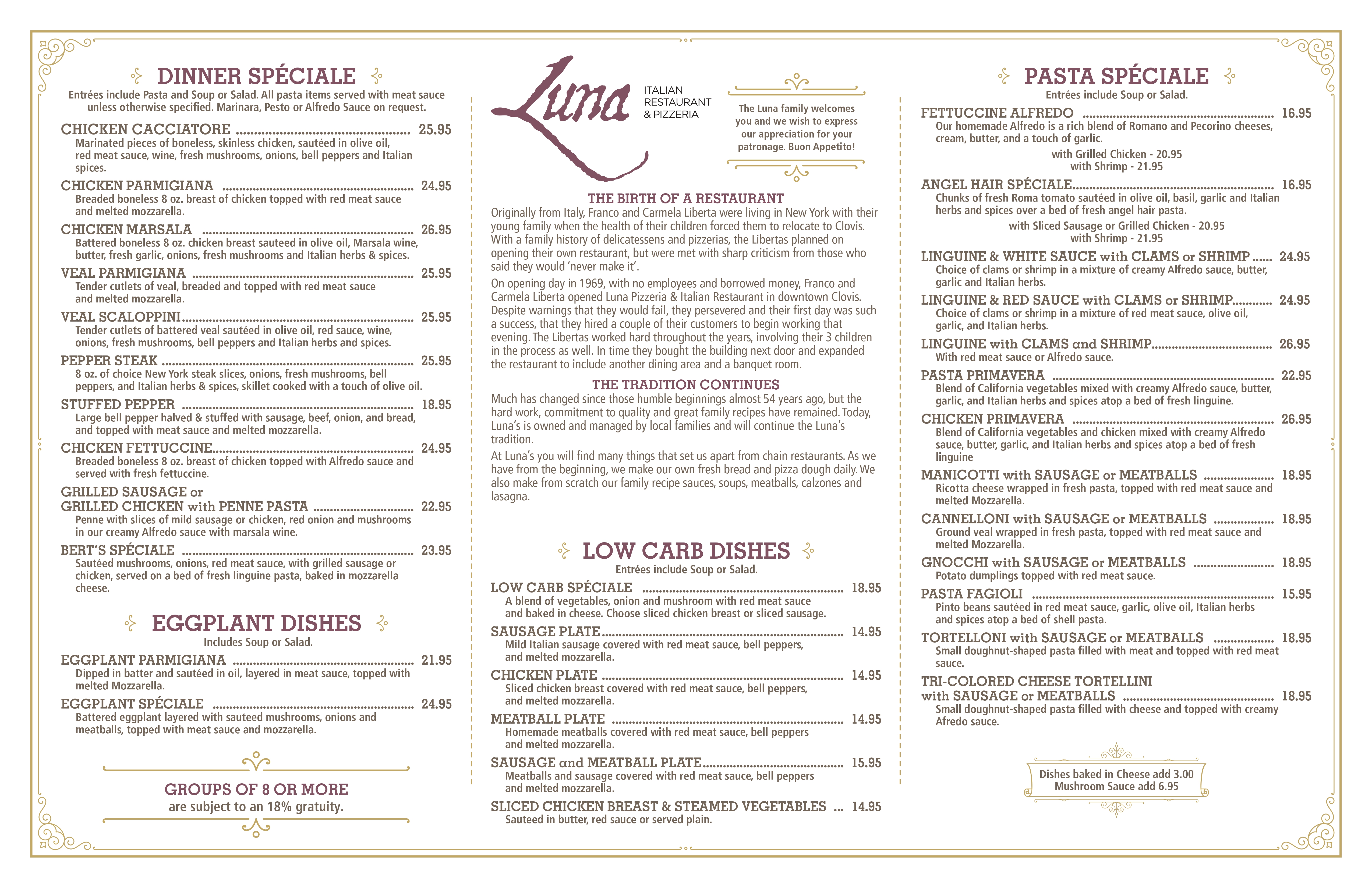 © 2026 Luna Italian Restaurant & Pizzeria | Terms of Use | Privacy Policy - All Rights Reserved.